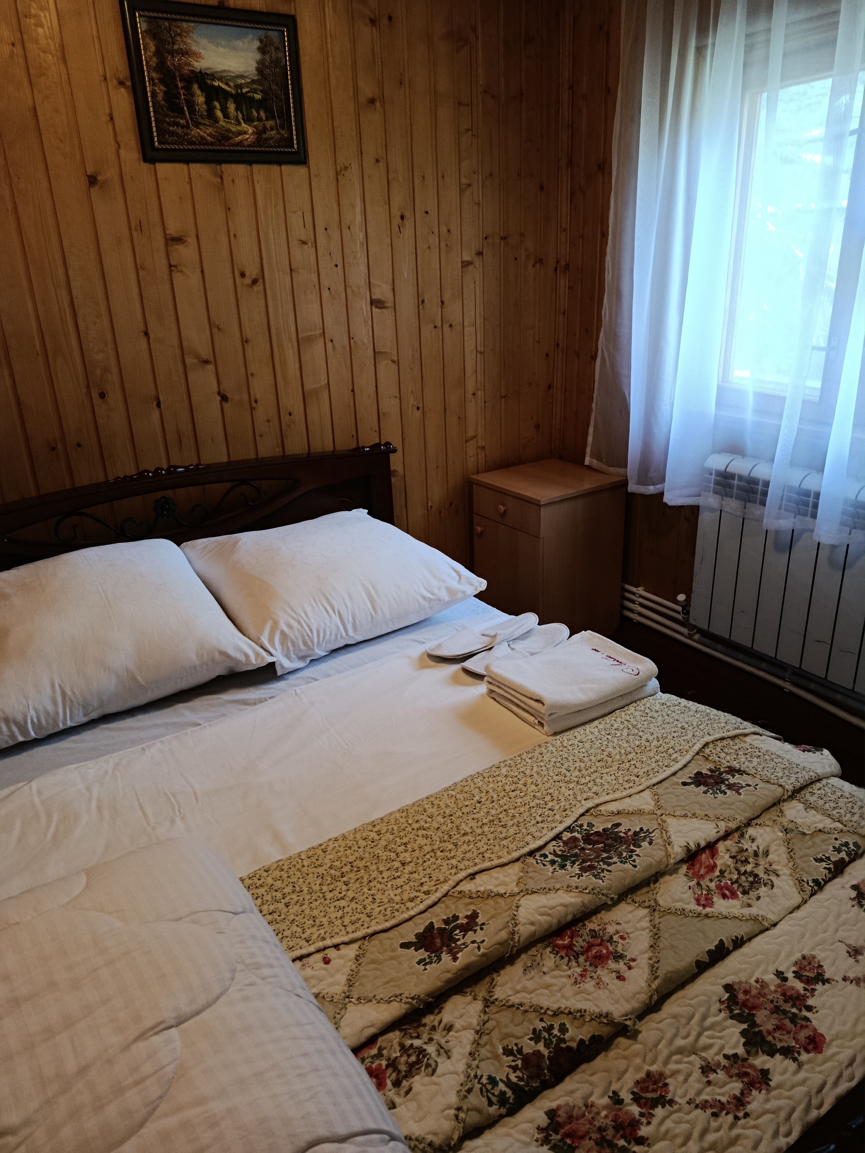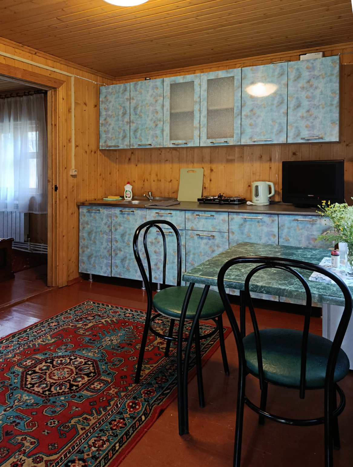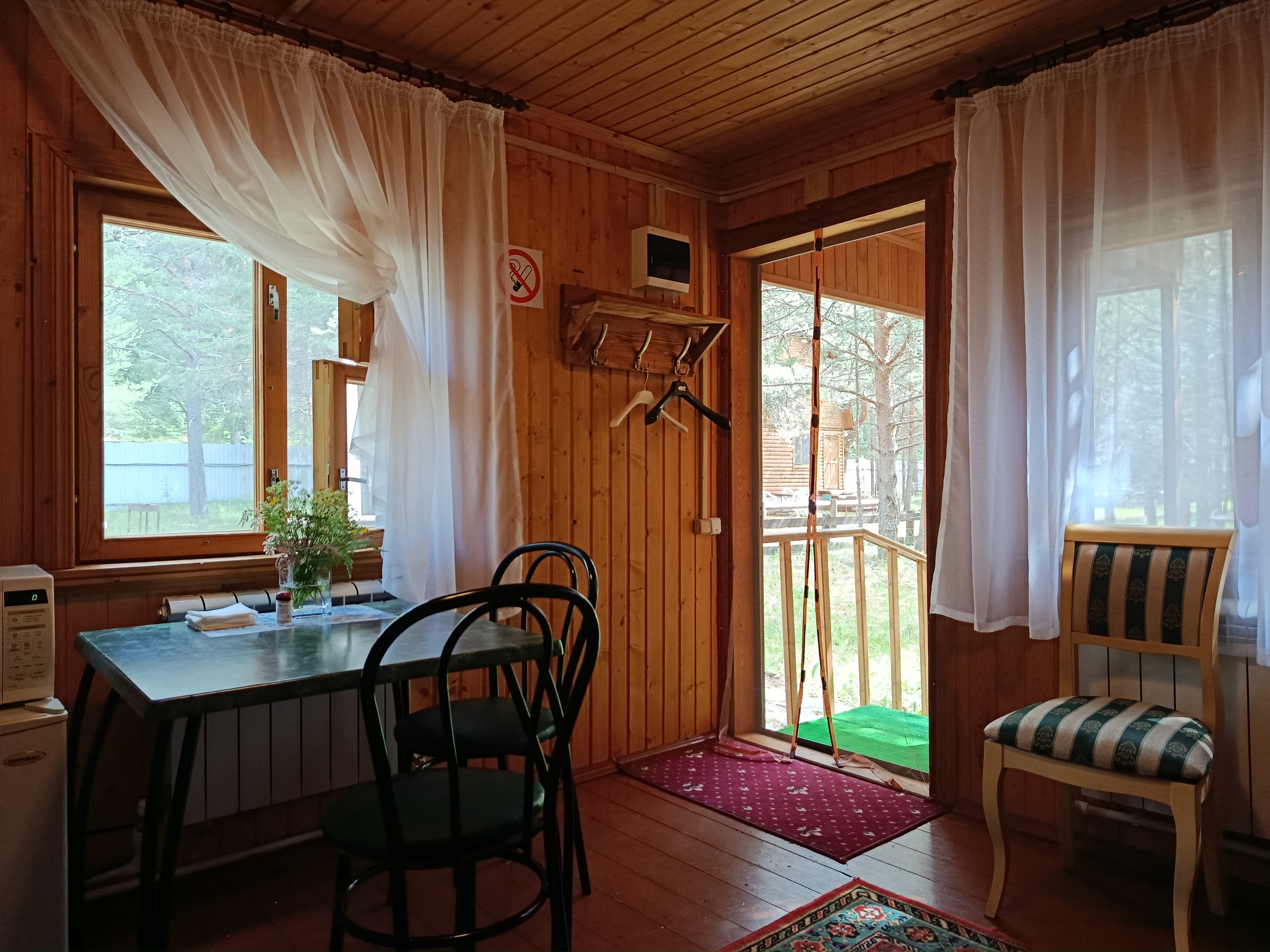 Уютный дом на 2 гостя общей площадью 32 м2. В доме вас ждет: Зона входа совмещенная с кухней: кухонный гарнитур, стол, стулья, чайник, телевизор, варочная панель, микроволновая печь, холодильник, набор посуды и столовых принадлежностей, шампура, штопор. Соль, сахар, чай-кофе комплиментарно. Комната с 2х-спальной кроватью с ортопедическим матрасом, тумба, стул. Санузел с душем, полотенца, одноразовые тапочки, шампунь-кондиционер, гель и зубная щетка. WiFi. Мангальная зона