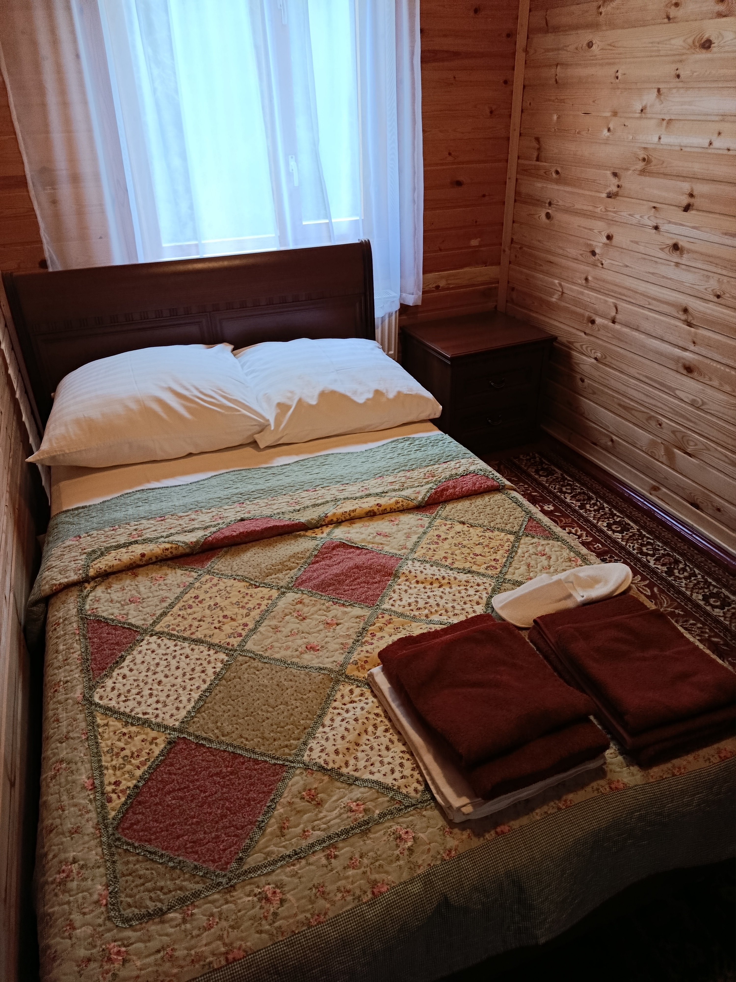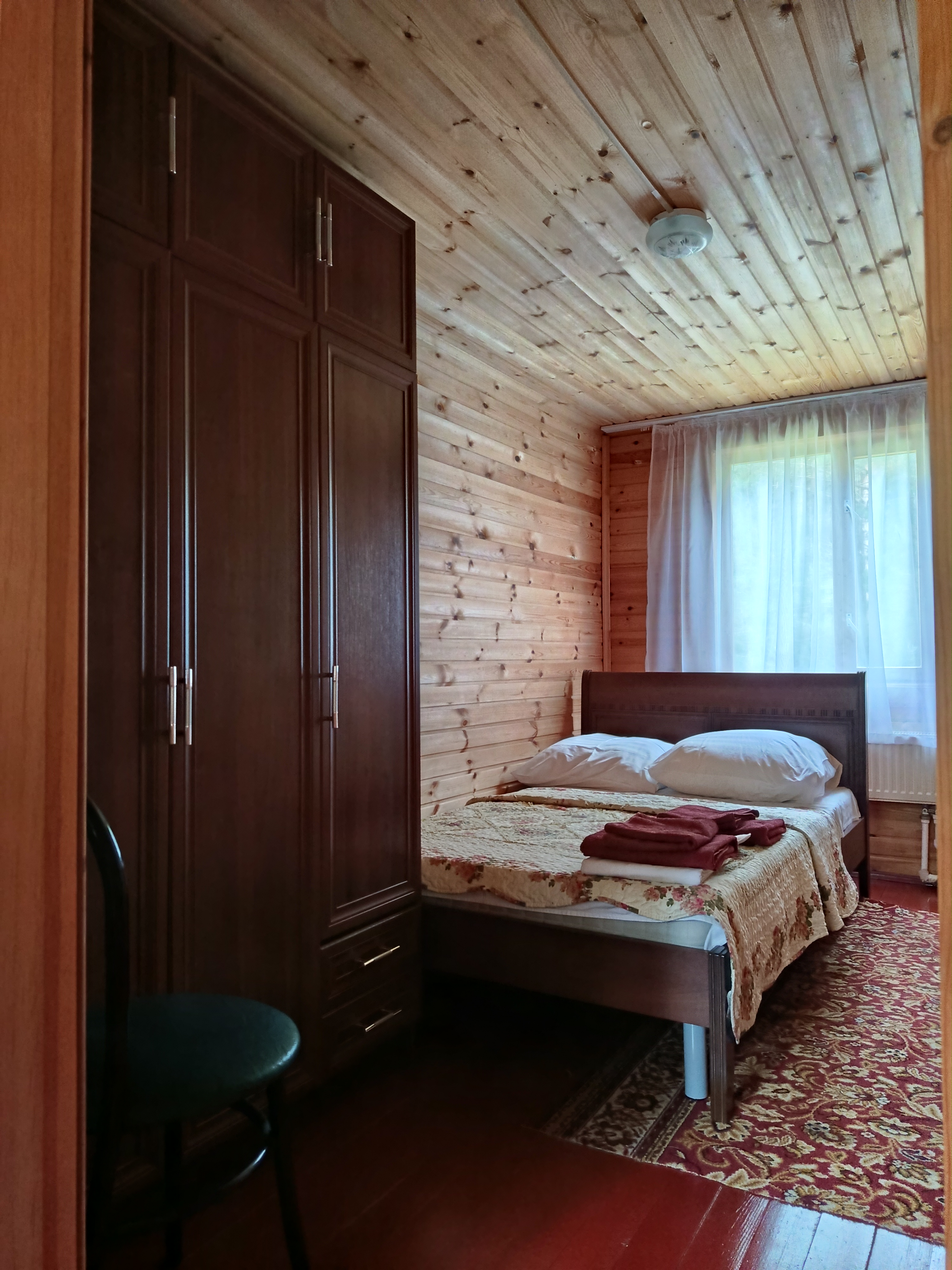 Уютный дом до 7 гостей общей площадью 73 м2. В доме вас ждет: Прихожая с вешалкой. Кухня-гостиная: кухонный гарнитур, диван, большой стол, стулья, чайник, телевизор, варочная панель, микроволновая печь, холодильник, набор посуды и столовых принадлежностей, шампура, штопор. Соль, сахар, чай-кофе комлиментарно. Отдельная комната с 2х-спальной кроватью с ортопедическим матрасом, тумба, шкаф для одежды. Отдельные комнаты на втором этаже с двумя 1,5-спальными кроватями, тумбами, шкафами для одежды. Санузел с душем, полотенца, одноразовые тапочки, шампунь-кондиционер, гель и зубная щетка. WiFi. Мангальная зона