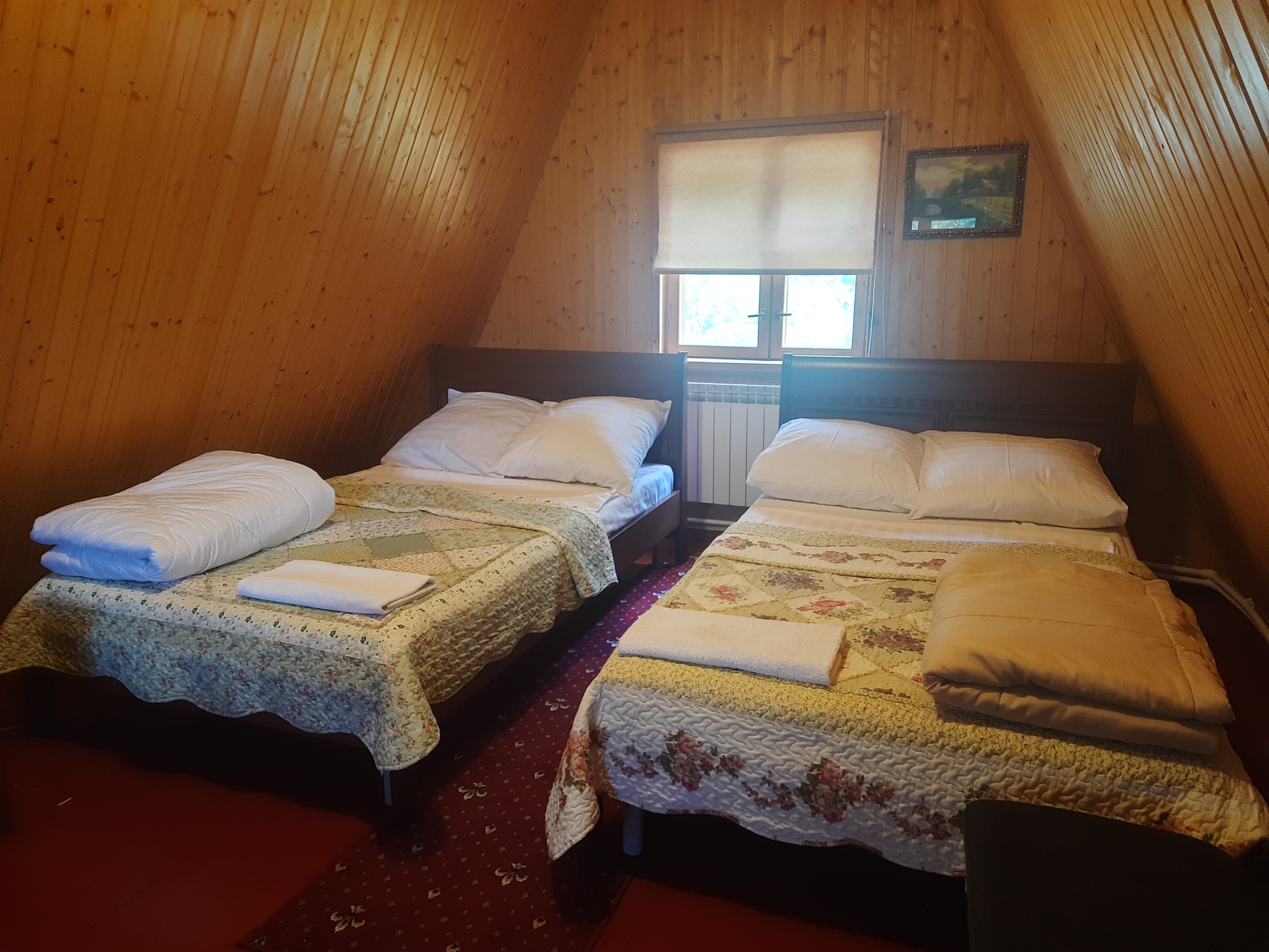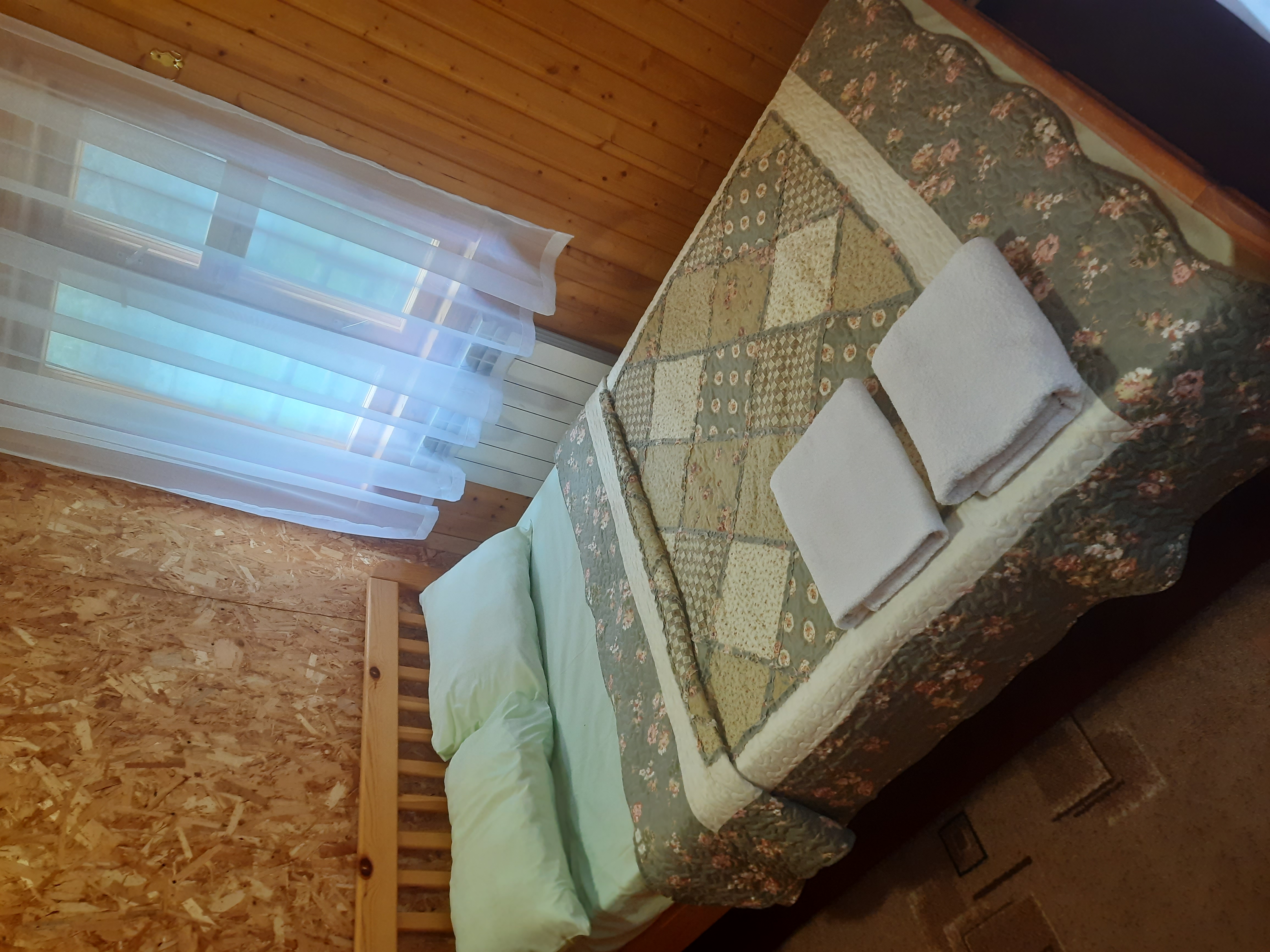 Уютный дом до 5 гостей общей площадью 56 м2. В доме вас ждет: Зона входа совмещенная с кухней: кухонный гарнитур, стол, стулья, чайник, телевизор, варочная панель, микроволновая печь, холодильник, набор посуды и столовых принадлежностей, шампура, штопор. Соль, сахар, чай-кофе комплиментарно. Комната с 1,5-спальной кроватью с ортопедическим матрасом, тумба. Комната на втором этаже с двумя 1,5-спальными кроватями, тумбами. Санузел с душем, полотенца, одноразовые тапочки, шампунь-кондиционер, гель и зубная щетка. WiFi. Мангальная зона
