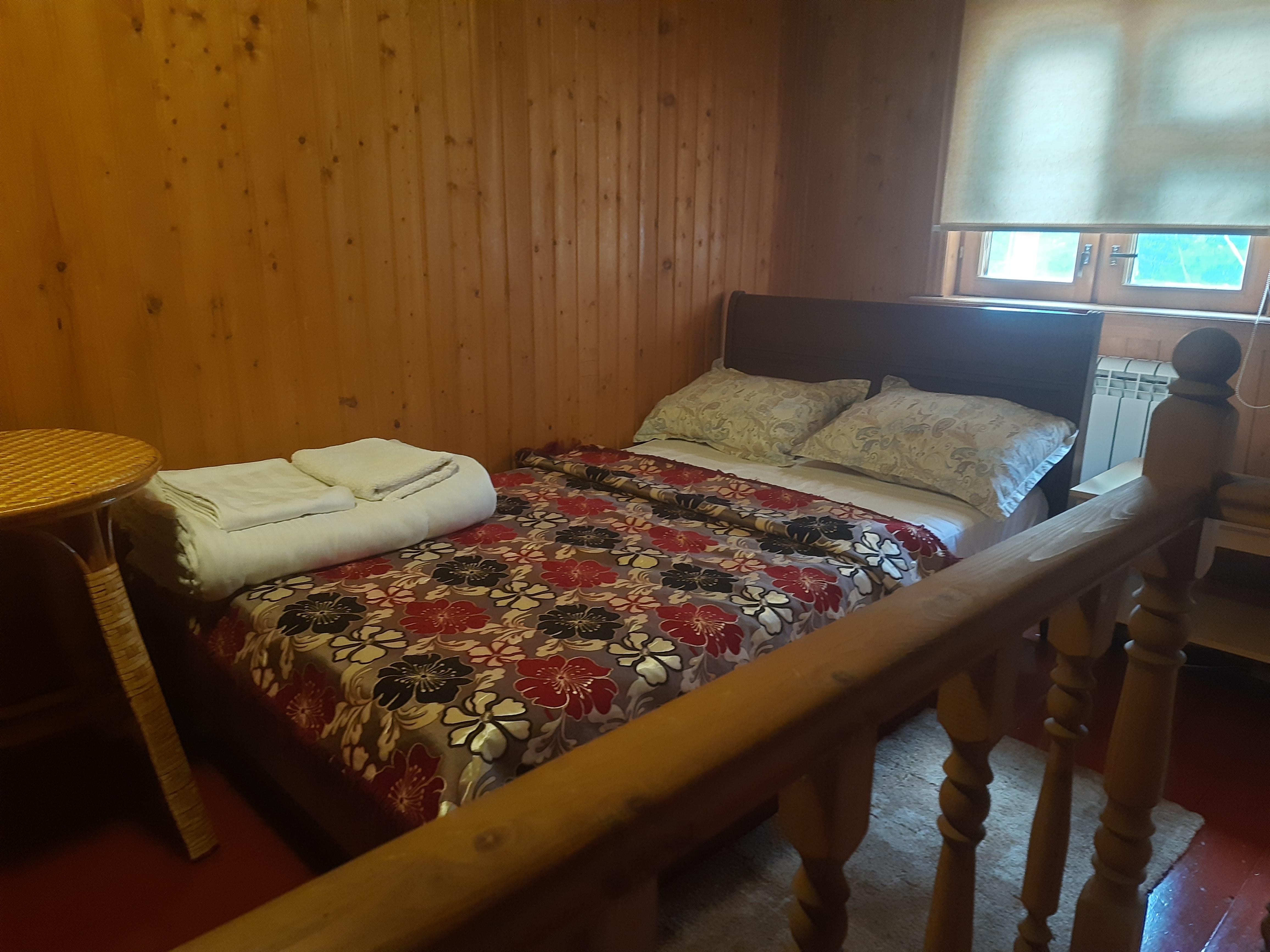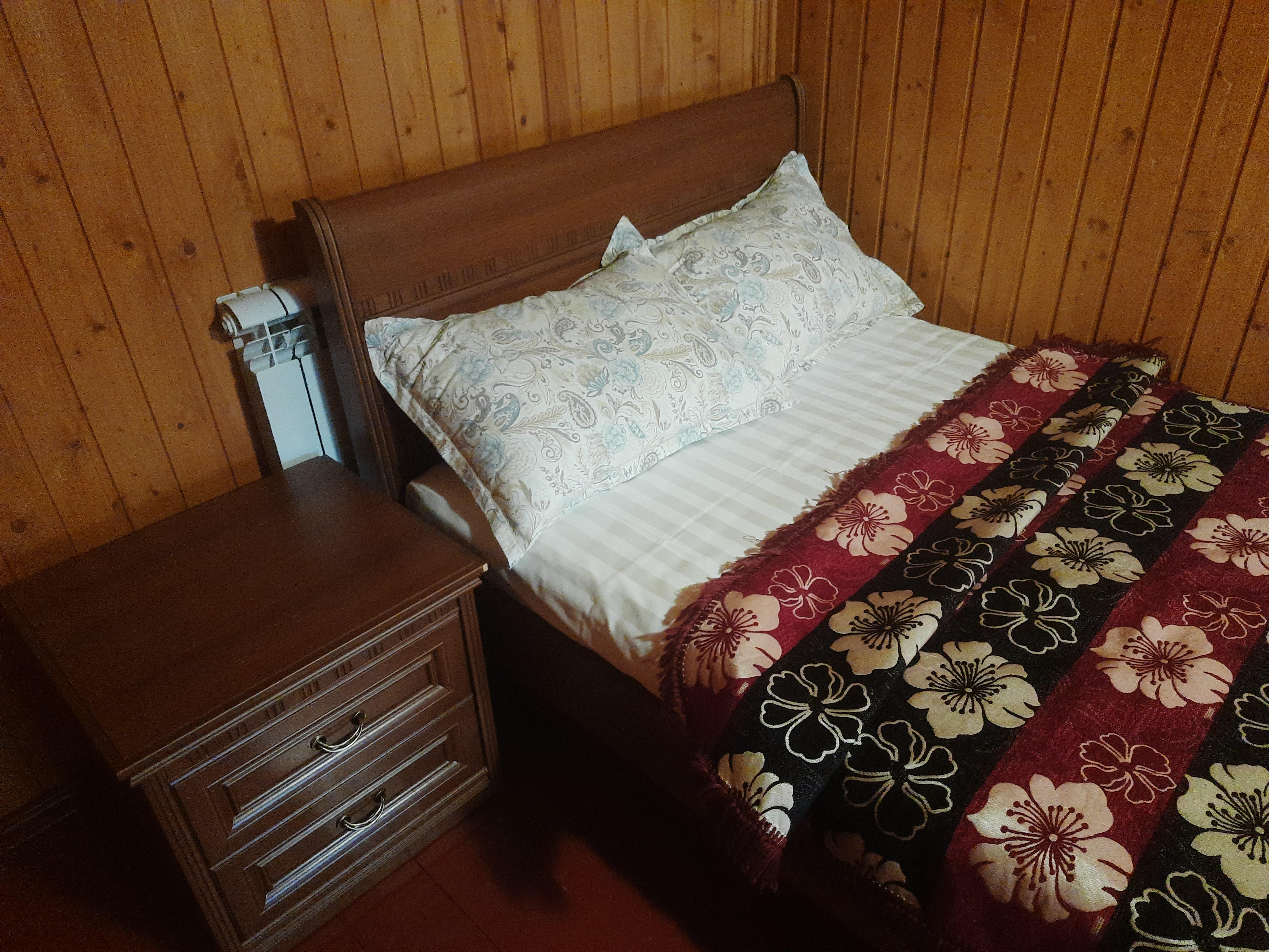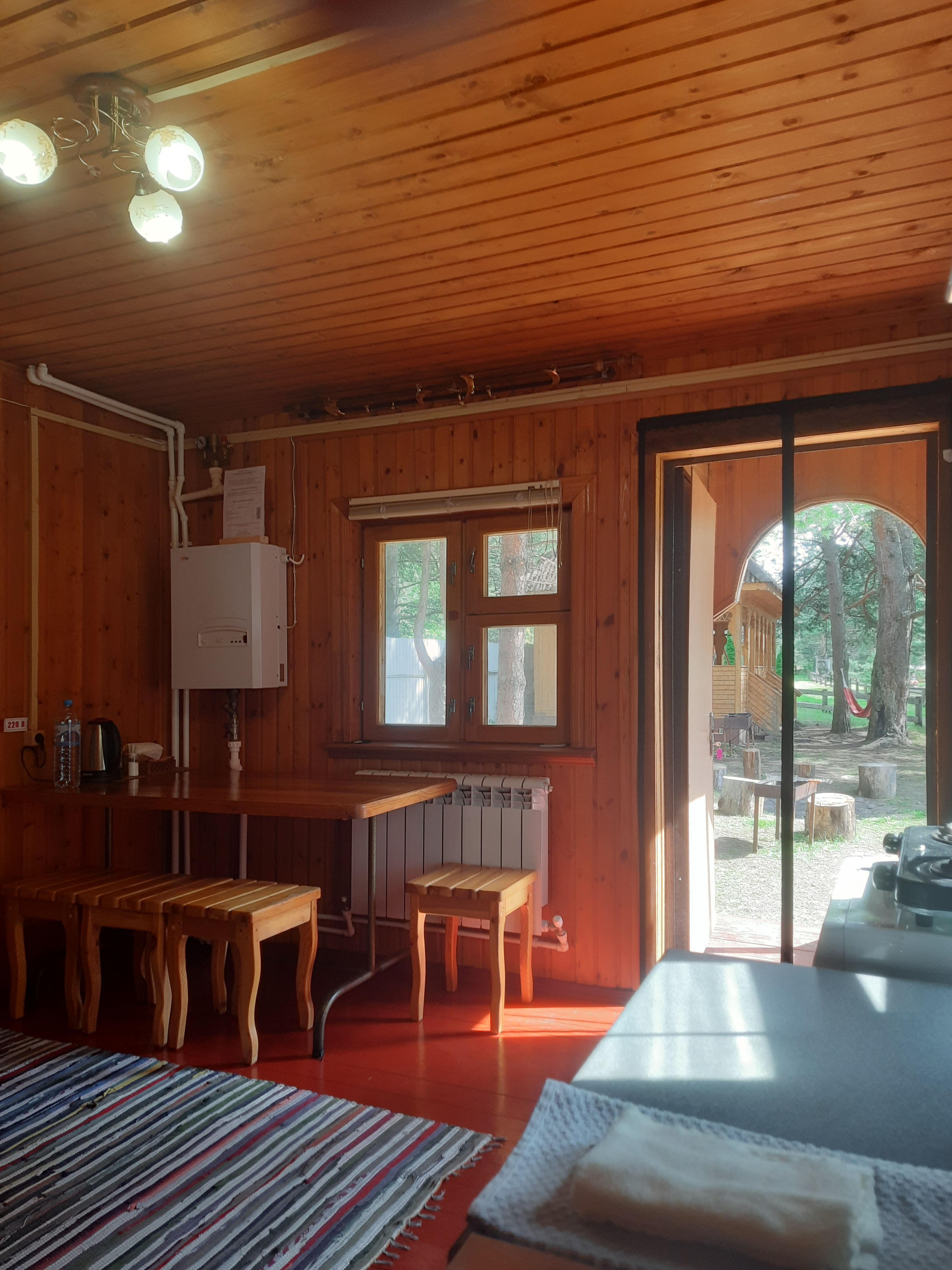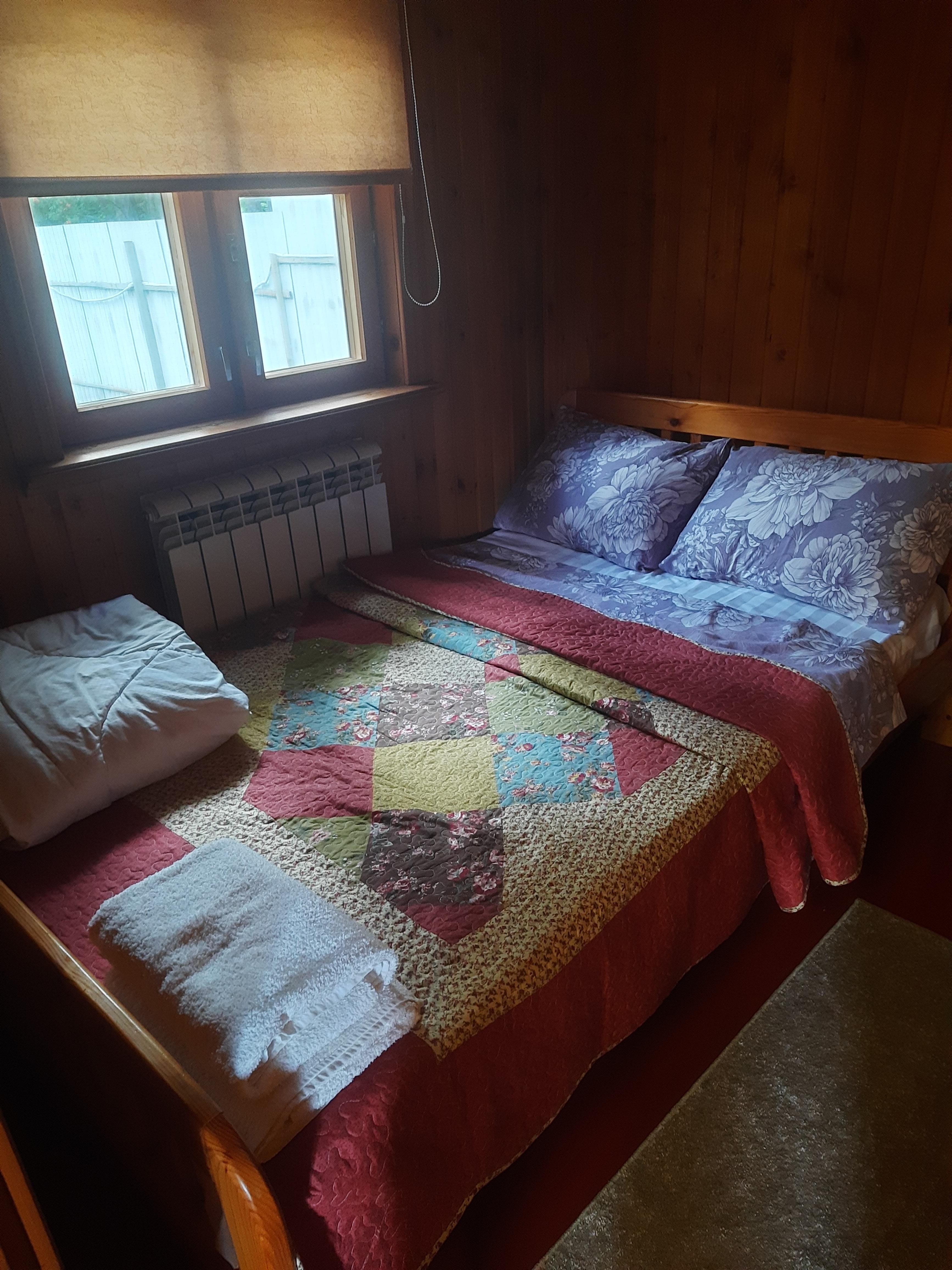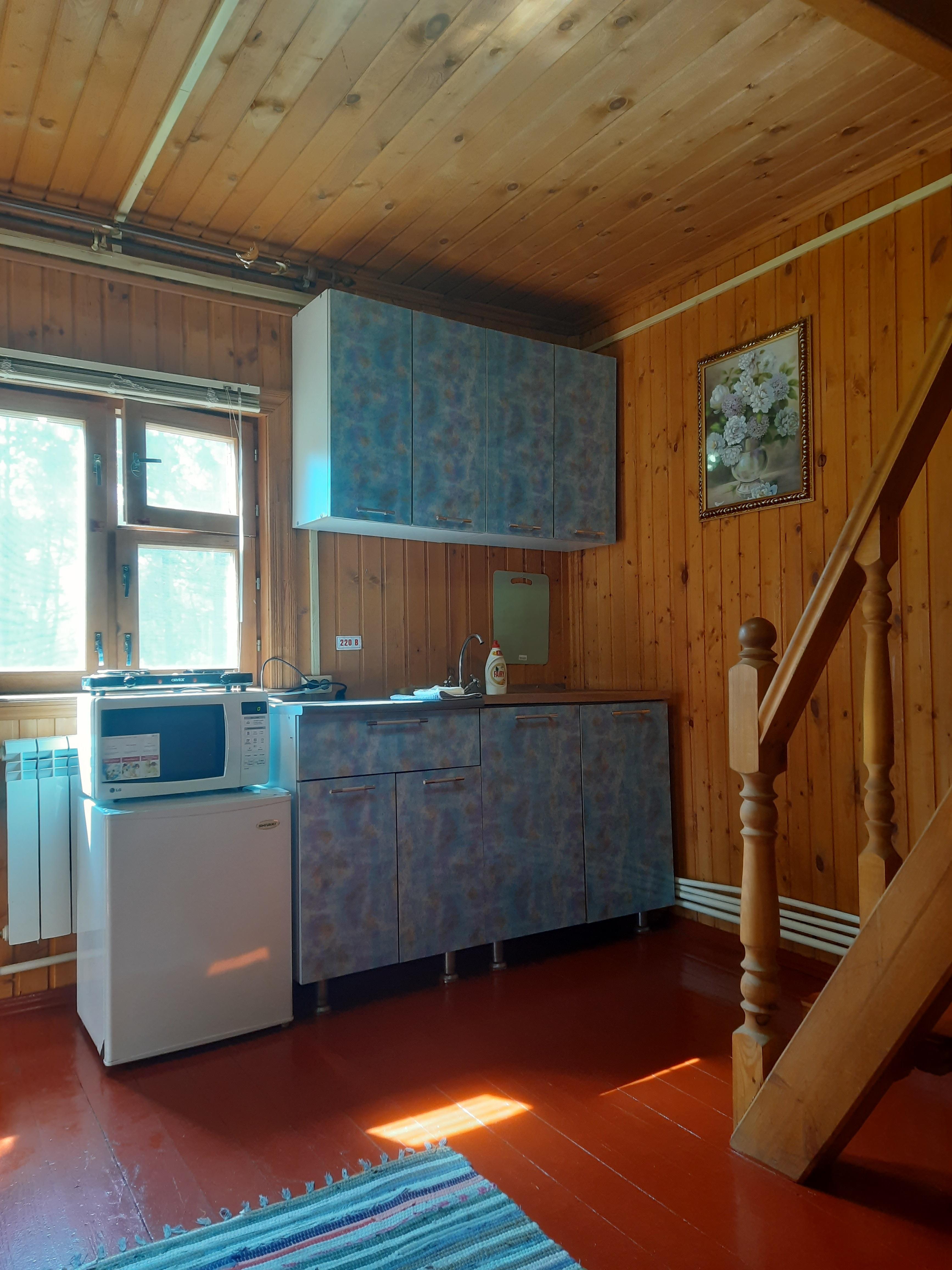 Уютный дом до 5 гостей общей площадью 57 м2. В доме вас ждет: Зона входа совмещенная с кухней: кухонный гарнитур, стол, стулья, чайник, телевизор, варочная панель, микроволновая печь, холодильник, набор посуды и столовых принадлежностей, шампура, штопор. Соль, сахар, чай-кофе комплиментарно. Комната с 1,5-спальной кроватью с ортопедическим матрасом, тумба. Комната на втором этаже с двумя 1,5-спальными кроватями, тумбами. Санузел с душем, полотенца, одноразовые тапочки, шампунь-кондиционер, гель и зубная щетка. WiFi. Мангальная зона
