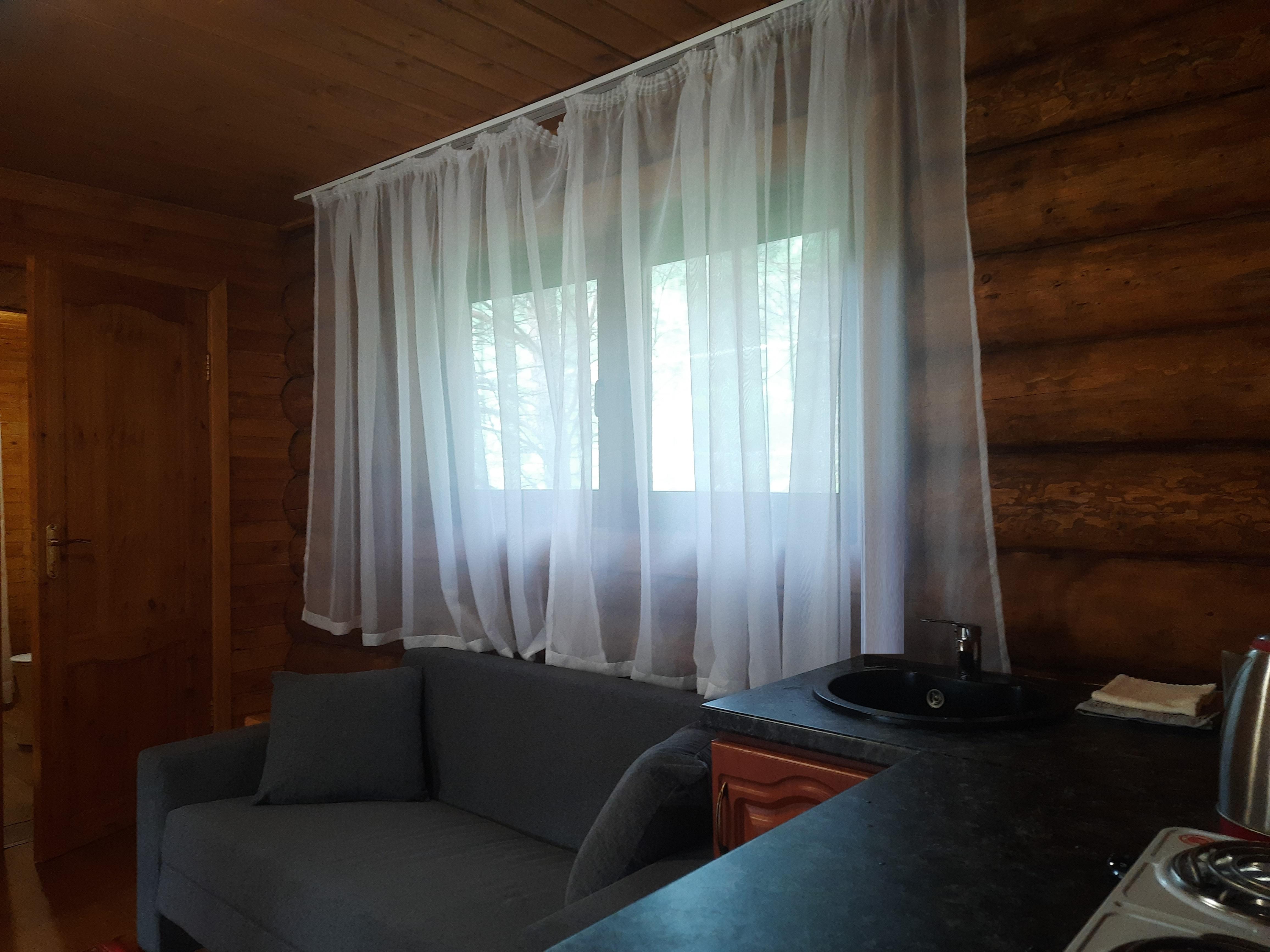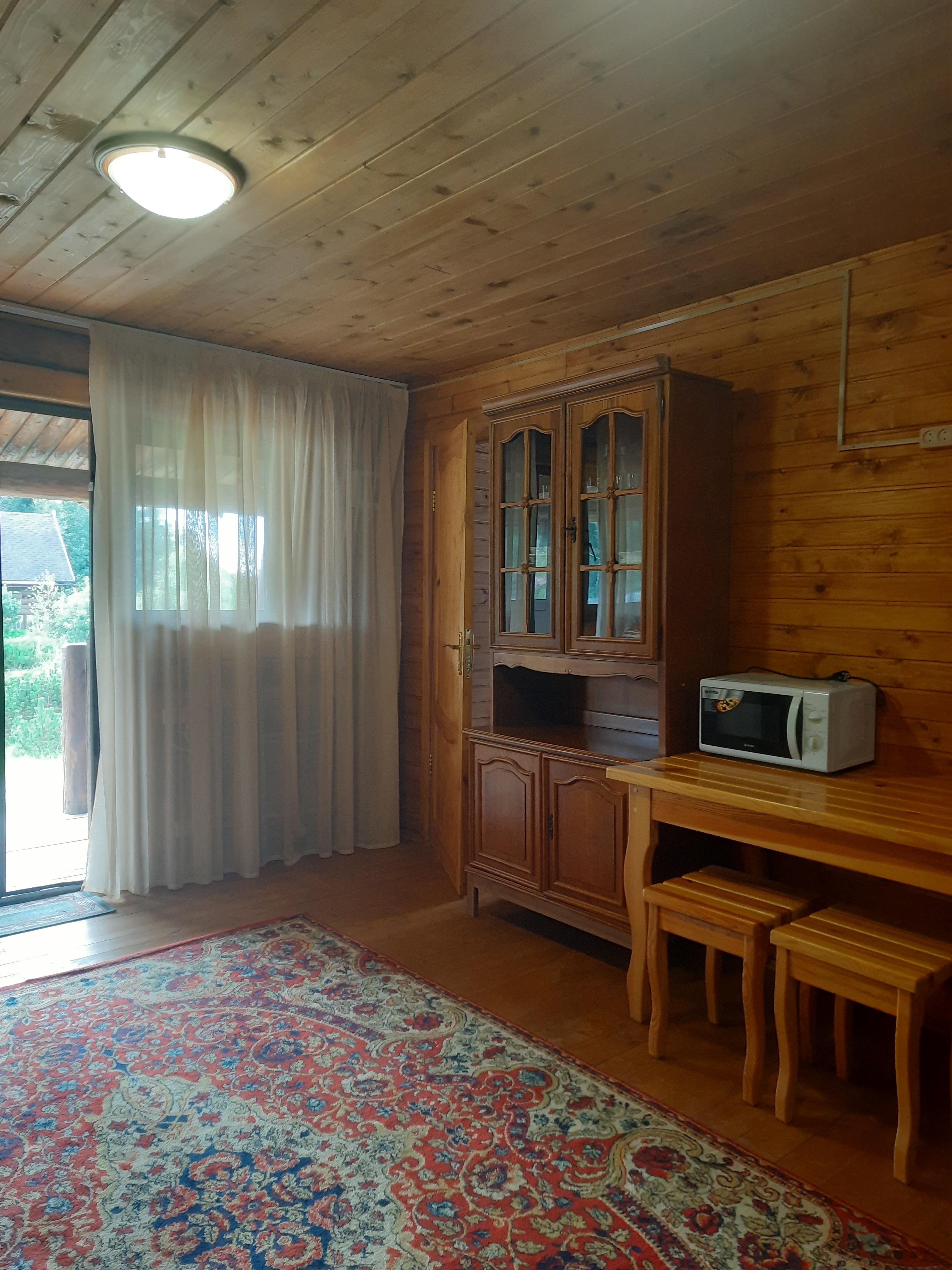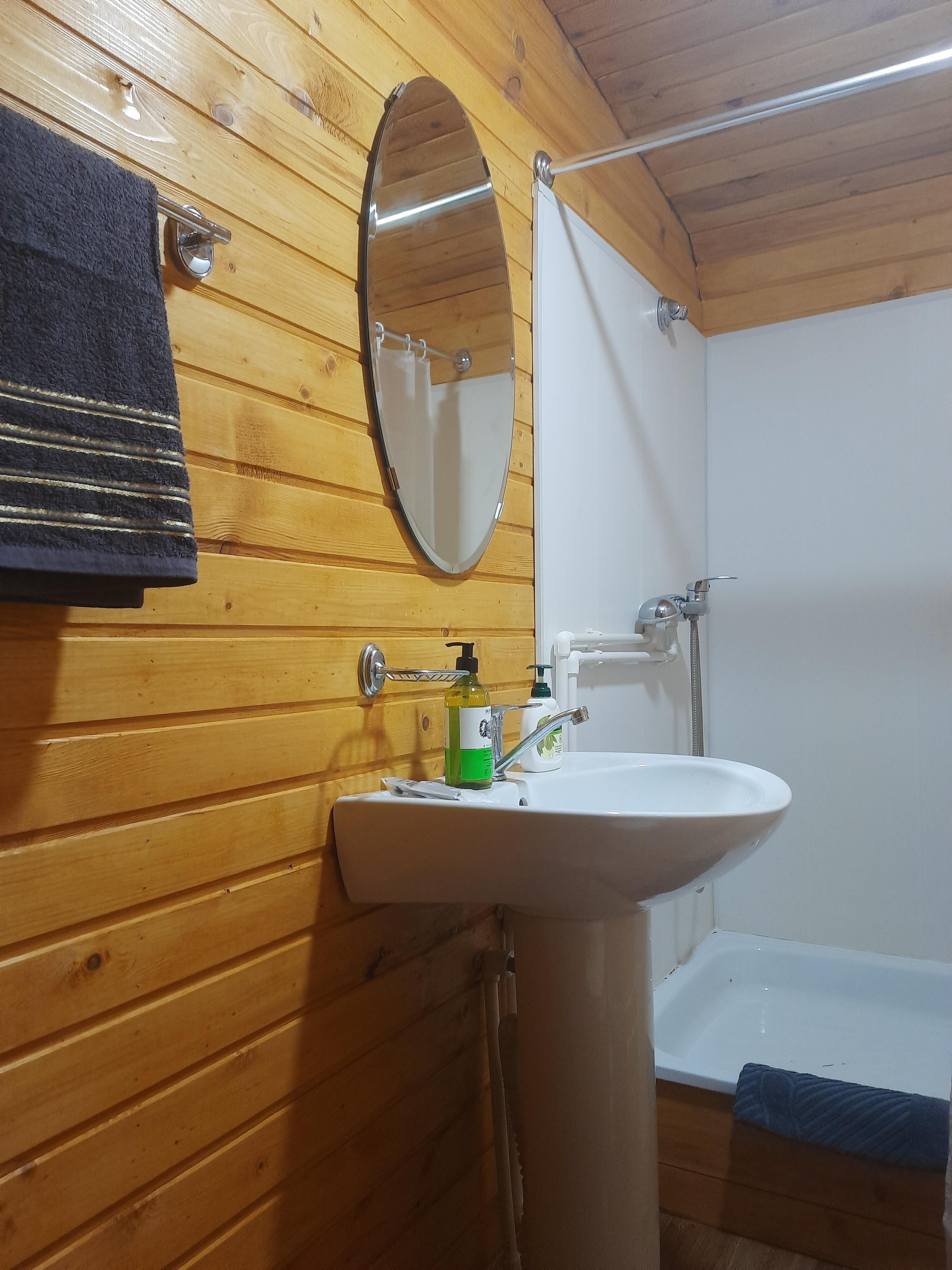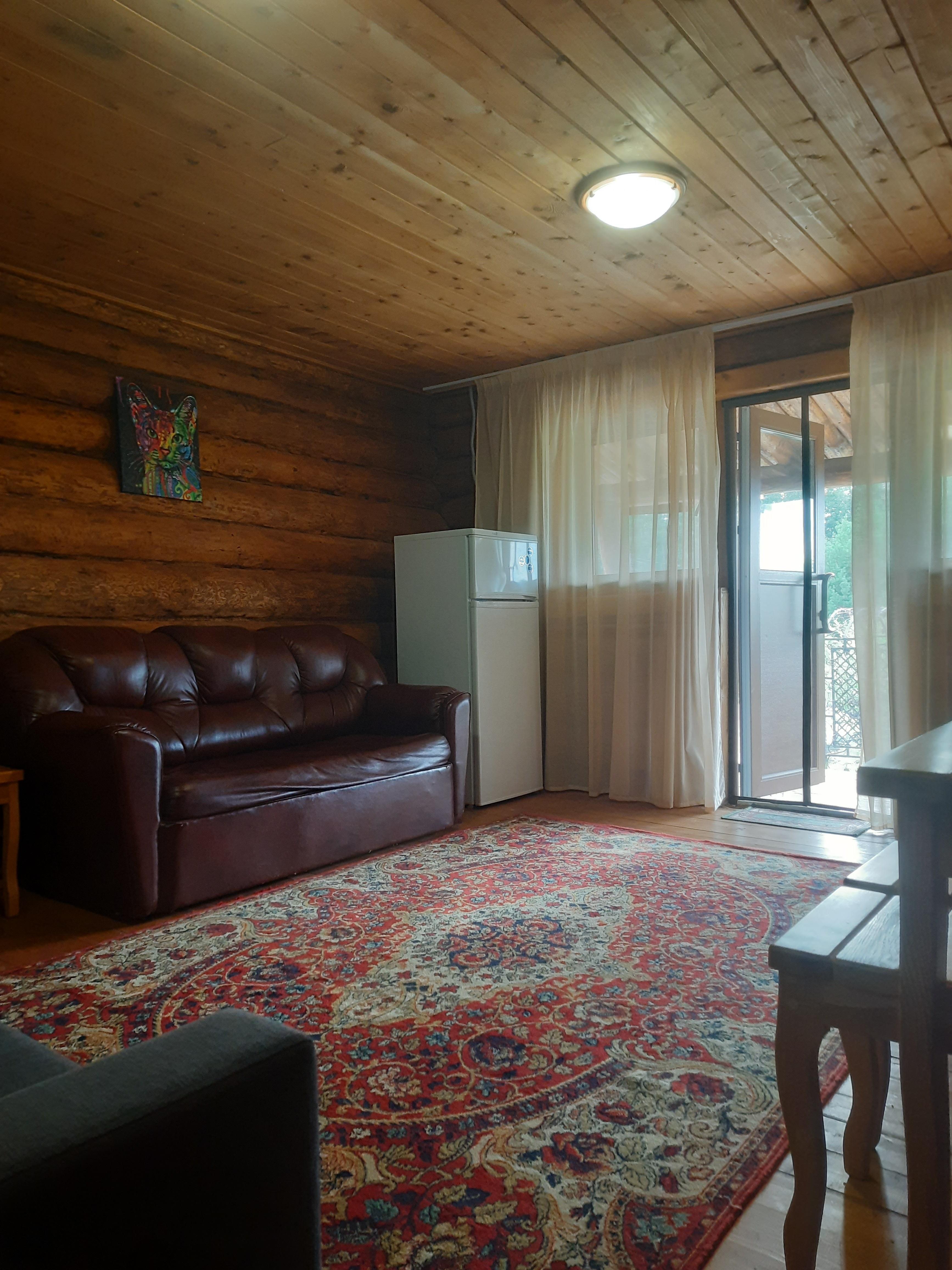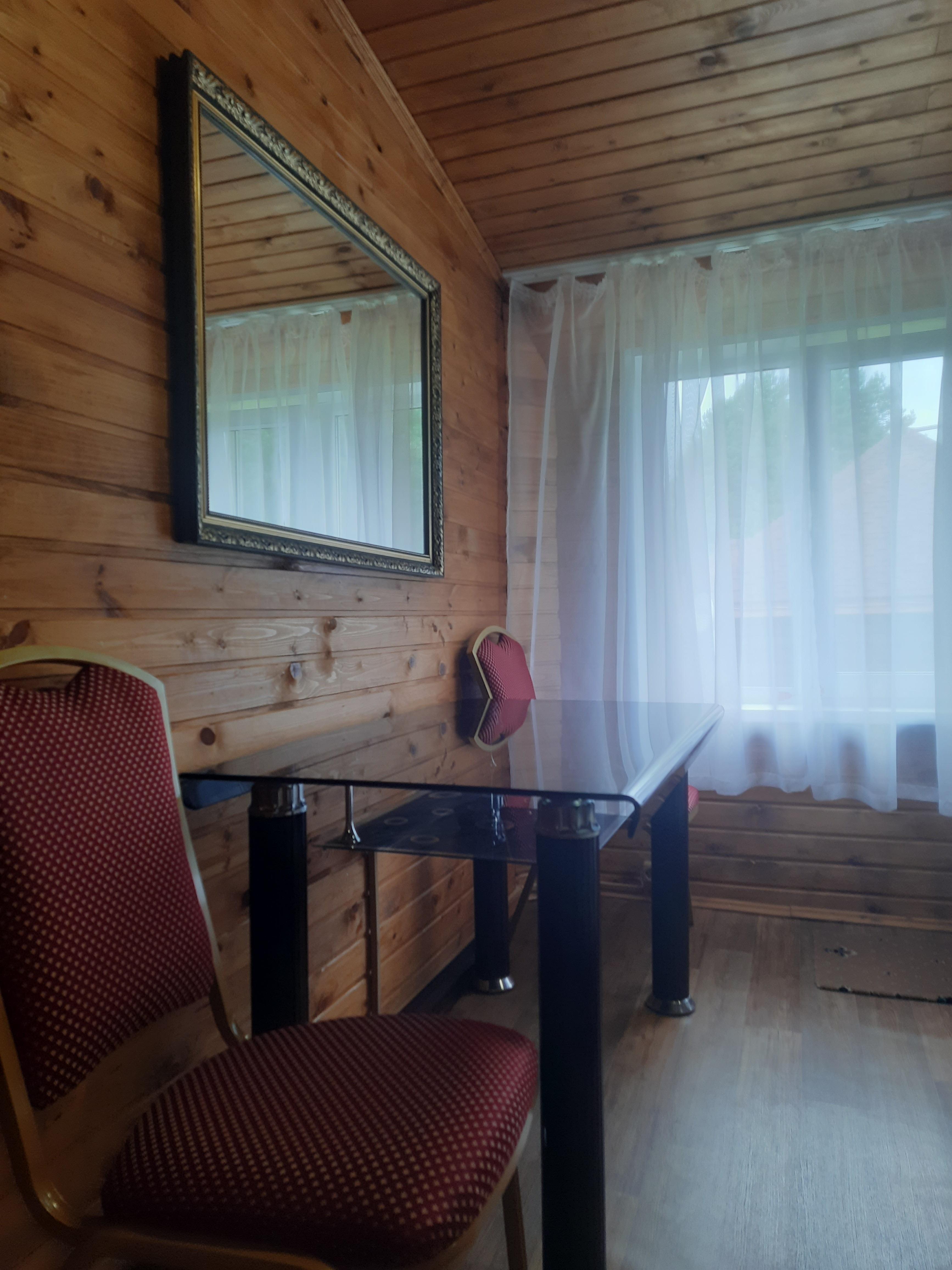 Уютный дом до 4 гостей общей площадью 49 м2. В доме вас ждет: Зона входа совмещенная с кухней: 2х-спальный раскладной диван, кухонный гарнитур, стол, стулья, чайник, варочная панель, микроволновая печь, холодильник, набор посуды и столовых принадлежностей, шампура, штопор. Соль, сахар, чай-кофе комплиментарно. Комната с 2х-спальной кроватью с ортопедическим матрасом, стол, зеркало. Санузел с душем, полотенца, одноразовые тапочки, шампунь-кондиционер, гель и зубная щетка. Мангальная зона